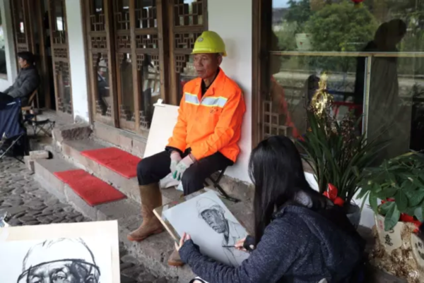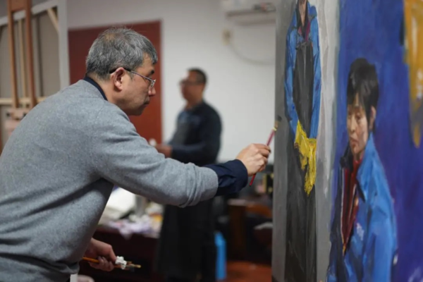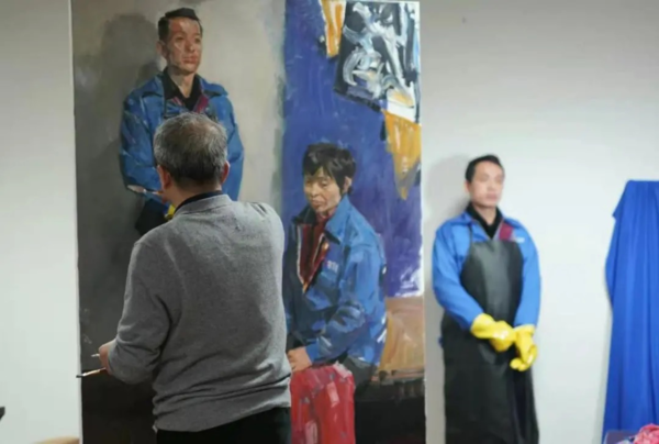 《色彩—油画写生语言》入选国家级课程思政示范项目,课程负责人何红舟教授在印染厂给工人写生
