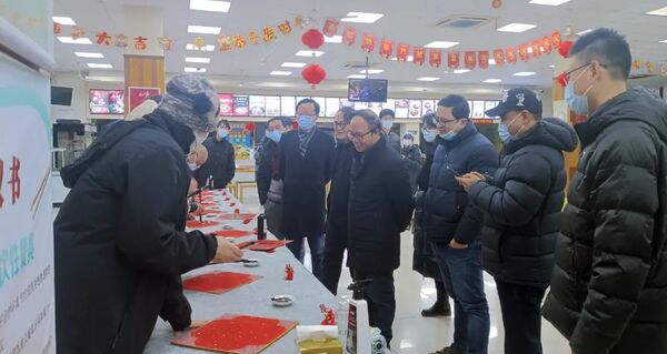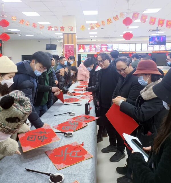 随后,来自世界各地的留学生与中国师生一同泼墨挥毫,用汉语、印度语、韩语、俄罗斯语、伊朗语等语言,写成“福”字书法作品,浓浓情意,切切祝福,为这个雨雪霏霏的冬日增添了温暖人心的坚定力量。
