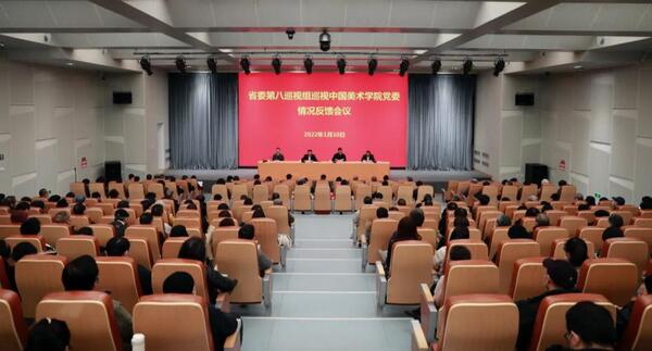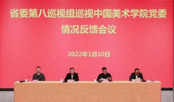 2022年1月10日,省委第八巡视组向中国美术学院党委反馈巡视情况。省委第八巡视组组长陈一行代表省委巡视组分别向中国美术学院党委书记金一斌和中国美术学院党委领导班子反馈了巡视情况,省委组织部部务会议成员、两新工委专职副书记李强向金一斌传达了省委书记专题会议精神,对巡视整改提出要求。金一斌主持领导班子反馈会议并作表态讲话。