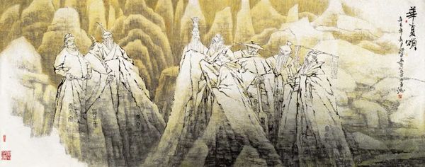 对吴老师来说,作画是一场笔、墨、形、色的综合演出,画家是这场演出的导演,最重要的,是“于泼墨挥毫之际充分体会驾驭千变万化、难以预测而惟凭随机应变的机智与经验,得以掌握酣畅淋漓的笔情墨趣”。与浙派人物画的前辈们相较,吴老师更讲求书法用笔。其用笔旋转往复,曲折顿挫,苍劲中含秀润,老辣中见妩媚,与大水大墨结合起来,时而开朗疏畅,时而紧凑绵密,时而轻松灵动,伴以色墨交融,水气酣畅,于画面中生出无穷变化。