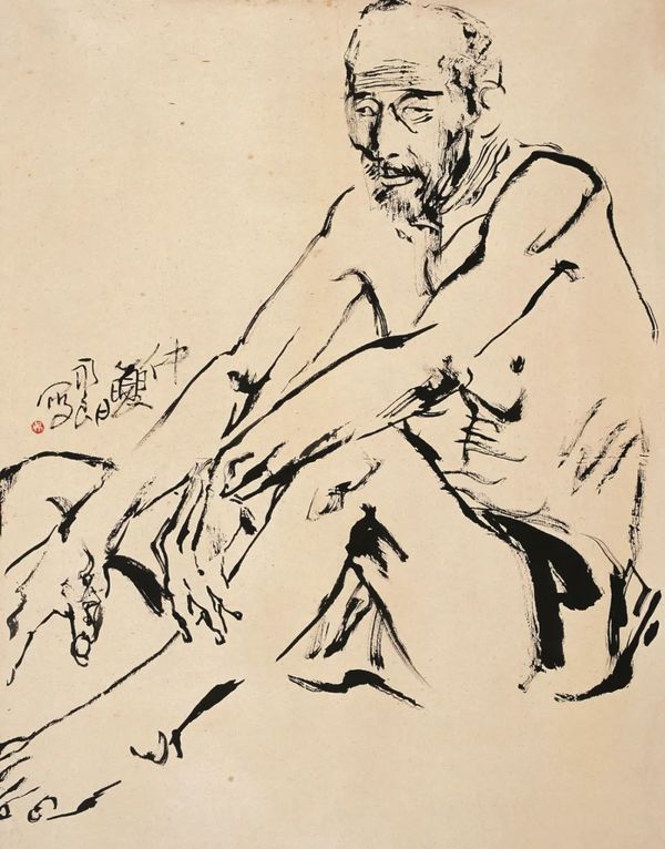 吴永良先生又是中国美院中国画教学的名师。他较早感悟到从硬笔到软笔、从素描到水墨之间的过渡训练,从而率先提出意笔线描的教学。以吴先生善笔尚意的禀赋与识见,吴先生提出这一课程是令人信服的。在我看来,这不仅是一门重要的转换性课程,更是中国画教学的核心内涵。意与线,从于心而出于手。心手合一,尽在毛笔的应用之上。此即一画之理。我想,不仅是吴先生的教学,吴先生的人与艺都是中国美院人物画教学改革与提高的、可资我们不断研学的榜样。
