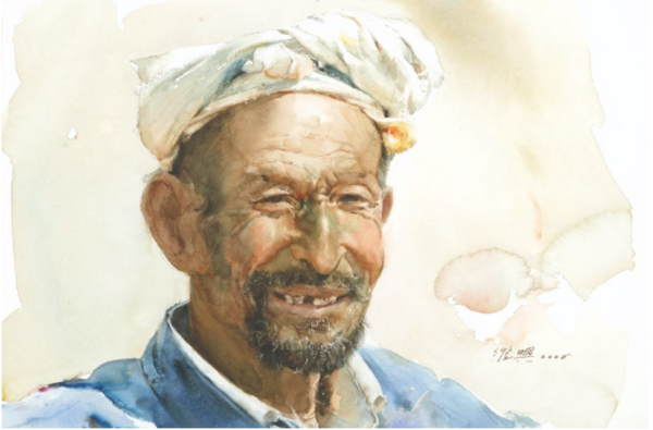 关维兴 《绥德老汉》 纸本水彩 35.7x54cm 2006年