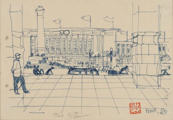 埃乌琴·博巴 《天安门广场2》 钢笔速写 18x25cm 1960年