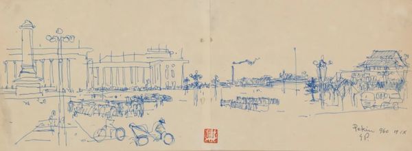 埃乌琴·博巴 《天安门广场1》 钢笔速写 18x48cm 1960年
