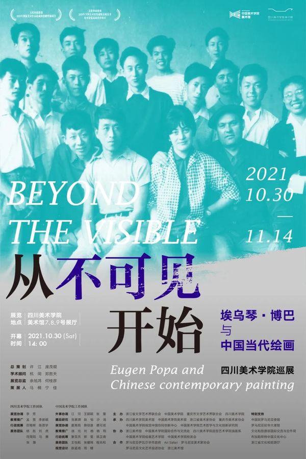 2021年10月30日下午,“从不可见开始:埃乌琴·博巴与中国当代绘画”巡展在四川美术学院美术馆开幕。展览在中国驻罗马尼亚大使馆、罗马尼亚驻华大使馆、文化和旅游部国际交流与合作局、文化和旅游部艺术司、布加勒斯特中国文化中心、浙江省文化和旅游厅的特别支持下,由浙江省文学艺术界联合会、中国美术学院、重庆市文学艺术界联合会、四川美术学院主办,四川美术学院美术馆、中国美术学院美术馆、浙江省美术家协会、重庆市美术家协会、中国美术学院视觉中国协同创新中心、中国美术学院艺术哲学与文化创新研究院承办。