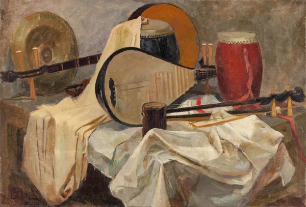 毛凤德 《静物乐器》 布面油画 97x66.5cm 1960年