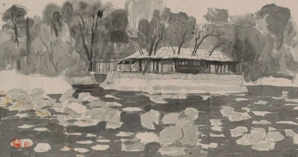 埃乌琴·博巴 《房子·杭州》 纸本水墨 41x77cm 1960年代