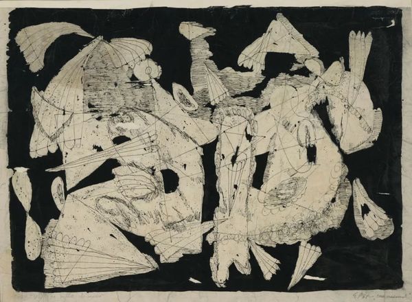 吉娜·哈其乌 《晒稻谷》 纸本素描 130x132cm 1960年代