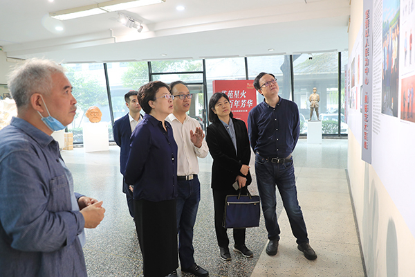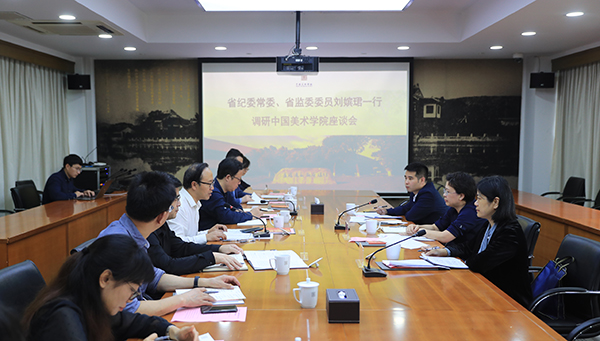 10月14日,浙江省纪委常委、省监委委员刘嫔珺来校调研,刘嫔珺一行在南山校区参观了“艺苑星火 百年芳华-党建国美之路”展览和中国画与书法艺术学院教学现场,并召开座谈会听取学校“清廉国美”建设情况汇报。