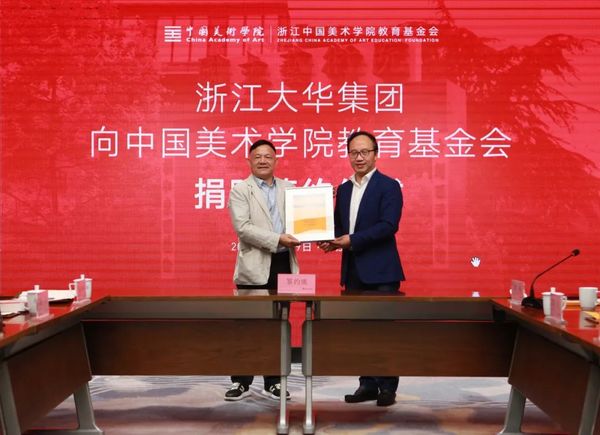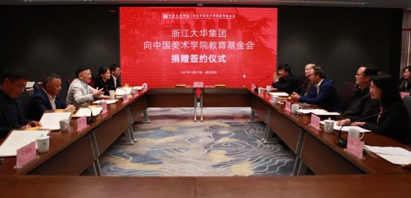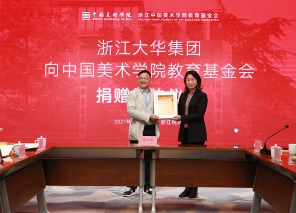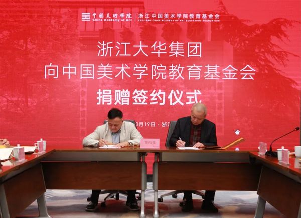 10月19日,浙江大华集团向中国美术学院教育基金会捐赠签约仪式举行。浙江大华集团捐资1000万元设立“大华基金”,支持中国美术学院天目古窑(曜变)技术研发中心的建设与发展。捐赠仪式上,中国美术学院党委书记金一斌、副院长傅巧玲分别向浙江大华集团董事长陈振华颁发荣誉证书和捐赠证书,副书记刘正与陈振华代表双方签署捐赠协议。浙江大华建设集团有限公司董事长陈小华、中国美术学院党委副书记孙旭东出席捐赠仪式,仪式由教育基金会理事长卢勇主持。