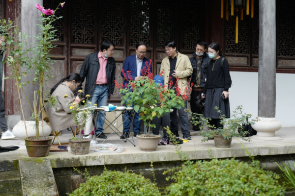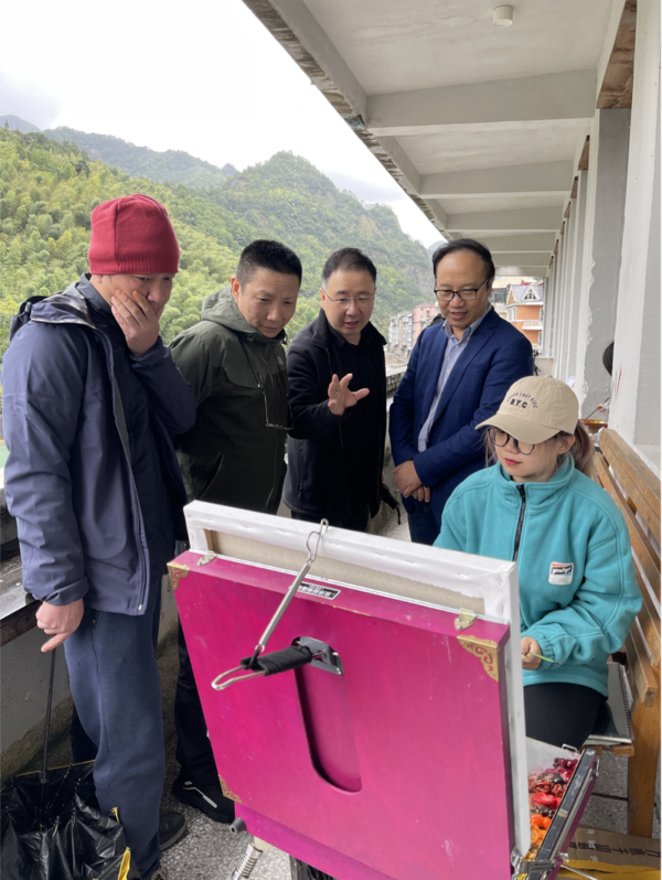 曹晓阳一行赴桐庐,看望中国画专业下乡写生社会实践课程的师生,并了解课程进展情况,观摩师生写生作品。曹晓阳与师生们交流:“人民是创作的源头活水,只有扎根人民,创作才能获得取之不尽、用之不竭的源泉。”下乡采风、教学、创作不仅是对新中国成立以来美术学院教学中社会主义下乡传统的延续,也是一次中国美院教学方式的革新。