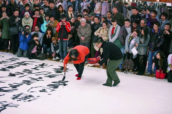 2011年,王冬龄在街头书写大字草书《心经》