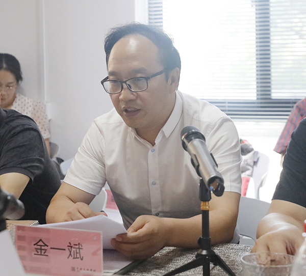 金一斌指出,学校认真贯彻中央、省委和省教育厅党委的安排部署,学习贯彻习近平总书记“七一”重要讲话精神,压实党委、二级党委、基层党支部“三个层面”责任,坚持领导干部、普通党员和广大师生“三个面向”,发挥学科专业优势,扎实开展“三为”专题实践,有效落实“六个一批”工作部署,突出党史学习教育与艺术教育深度融合的“国美味”,推动党史学习教育取得阶段性成效。一是用好课堂资源,深入学习贯彻“七一”重要讲话精神。领导干部们用好“理论课堂”,发挥“头雁”作用示范学习,带头开展专题辅导学、交流研讨学、调研宣讲学;师生用好“专业课堂”,发挥艺术学科特色优势,用活红色资源,把红色教育基地变成党史学习教育的“实践课堂”,确保暑期党史学习教育不断线。二是推动“三为”专题实践活动见实见效。学校把师生关心的“关键小事”当作“头等大事”,聚焦重点难点,把准群众需求、着眼群众满意,完成“三为”专题实践精选项目100项,先后完成良渚校区搬迁启用、学生体育运动场所改造提升、附中学生宿舍改造提升等民生工程,营造更好的校园生活环境,大大增强了师生的获得感。三是以“文化先行”助力“共同富裕”。学校作为艺术教育和文化建设的主力军,始终牢记习近平总书记“建设体现中国文化艺术研究和教育最高水平的世界一流美术学院”的重要指示,认真学习贯彻落实省委袁家军书记在师生座谈会上的重要讲话精神,积极贯彻省委文化工作会议精神,围绕“五大高地”建设,提出实施12项工程,深度对接国家战略需求,面向浙江文化建设的主战场,为加快打造新时代文化高地注入国美力量。四是以“七个一”推动乡村振兴。学校组建30支暑期“乡土学院”建设和培育项目实践团队,策划实施“七个一”系列活动,通过社会美育、社会调研、志愿服务等形式引导师生把艺术院校的文化和项目资源辐射到广袤的乡村大地,助力“美丽中国”建设。