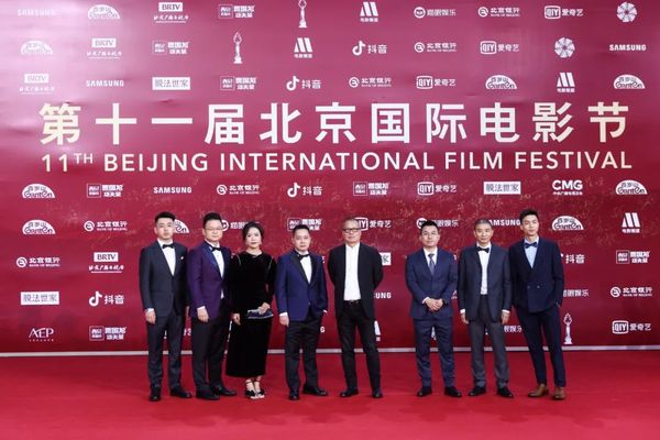 北京国际电影节红毯,自左向右:魏晓飞 宓鑫君 周佳鹂 刘智海 徐小明 丁炬 聂劲权 陈伟鑫