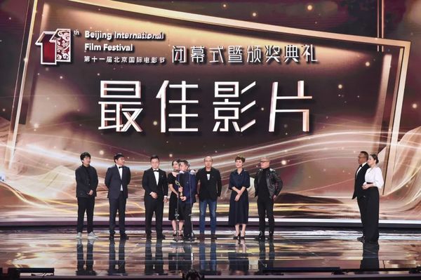 压轴颁出的是本届北京国际电影节最高大奖——最佳影片。该奖项由本届评委会主席巩俐与著名导演姜文共同颁发。