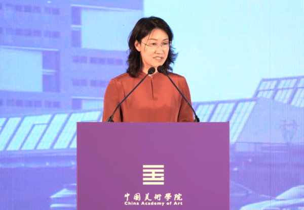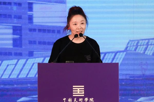 创新设计学院青年教师代表刘益红发言,她以国美学生的经历,国美教师的身份回顾了过去。她认为良渚校区以“毯式”精神,引入“茎干网络”下的教育生活社区化运行,构想一种结构与解构,逻辑与体验“迷宫式的清晰”,旨在形塑国美大设计学科独有的精神气概。所有因这个历史工程在此“停留”的建设者,所有将继承和共塑国美精神的“习惯”者,所有决案国美望境新“住所”的决策者,都将在此集结为良渚校区的时空“定居”者,居敬履远,绵延意长。
