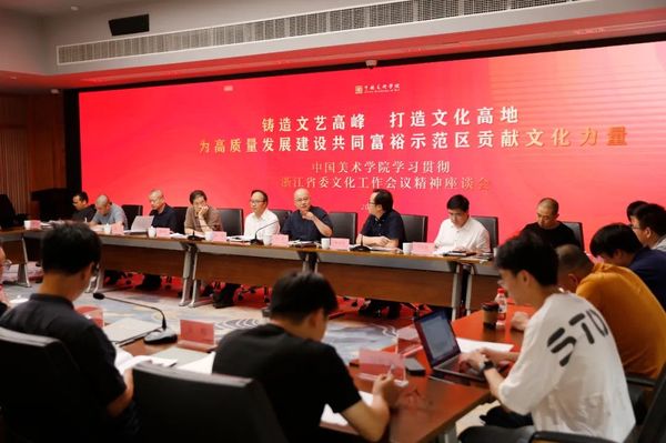 近日,浙江省委文化工作会议在杭州召开,会议总结我省近年来文化工作成就,分析新形势新使命,提出“十四五”文化建设总目标。9月7日,中国美术学院召开学习贯彻浙江省委文化工作会议精神座谈会,进一步深入学习贯彻习近平总书记“七一”重要讲话精神,全面贯彻习近平总书记关于文化工作重要论述精神,落实省委文化工作会议精神,为守好“红色根脉”,建设文化强省,加快打造新时代文化高地发挥国美作用、贡献国美力量。