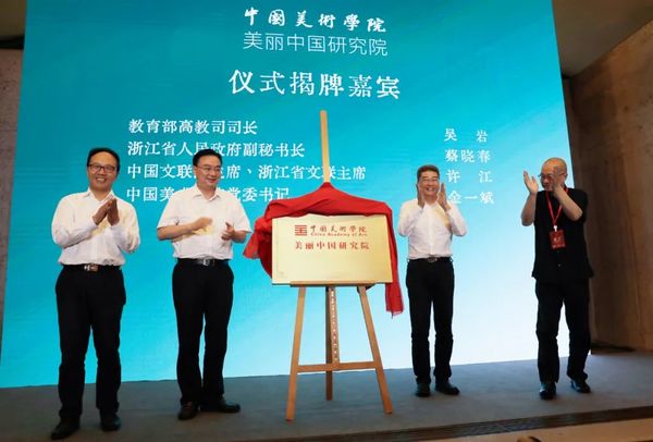 教育部高教司司长吴岩、浙江省人民政府副秘书长蔡晓春、中国文联副主席、浙江省文联主席许江、中国美术学院党委书记金一斌共同为中国美术学院美丽中国研究院揭牌