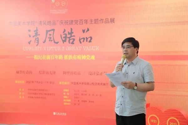 中国美术学院“清风皓品”庆祝建党百年主题作品展于7月6日上午在中国美术学院南山校区南苑展厅开幕。正值全党全国深入学习宣传贯彻习近平总书记在庆祝中国共产党成立100周年大会上的重要讲话精神之际,学校隆重推出“清风皓品”庆祝建党百年主题作品展,这是庆祝建党百年的生动艺术表达,也是一堂别具“国美味”的廉洁党课。