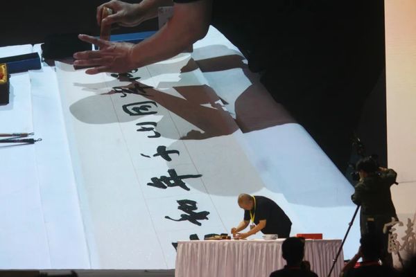 中国文联副主席、省文联主席许江题现场为画作题引首