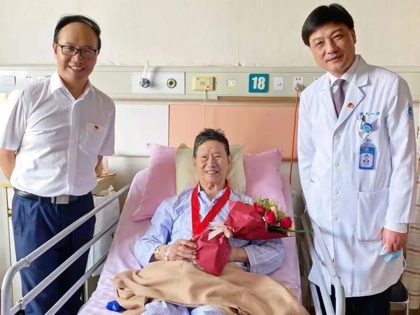 仪式结束后,金一斌等校领导前往医院看望老教授肖峰、宋韧,向他们颁发“光荣在党50年”纪念章。接下来,校领导将在七一前向未能到现场的老党员颁授纪念章。
