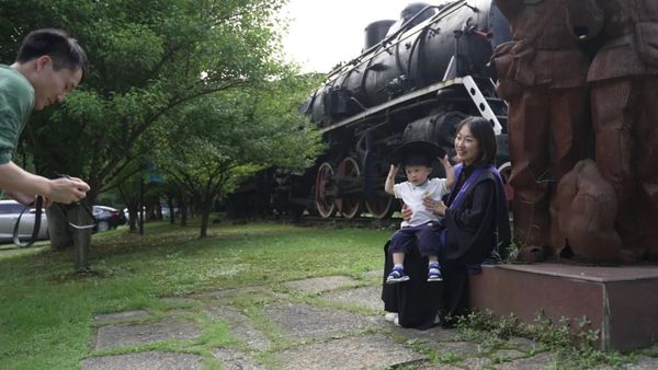 “皇皇者中华,五千年伟大的文明,亘古照耀齐日星……”雄壮辽阔的校歌声中,毕业典礼走向尾声。此前,学校领导先后与各院系毕业生合影留念。