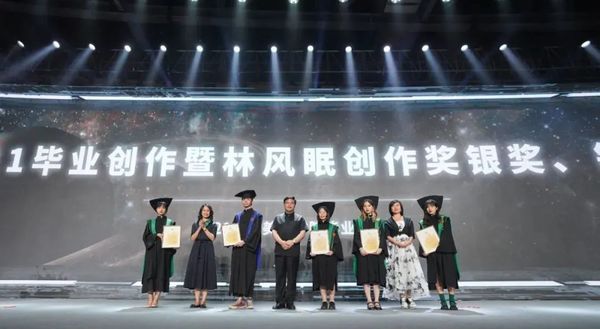 毕业创作金奖主题短片播放后,高世名为2021年毕业创作暨林风眠创作金奖的毕业生颁奖,金一斌、高世名为2021年毕业创作(设计)辅导奖获奖老师宋开智、梁怡、朱晨、高芙雁、张书彬、毕学锋、檀梓栋、吴旻、刘阳、戚山山、曹晓阳、程斌、黄斌斌、牟森颁奖。