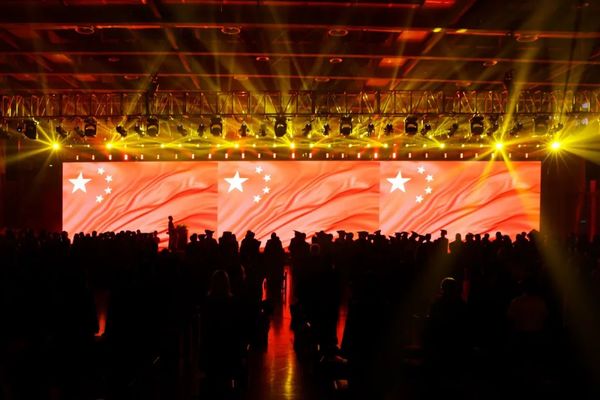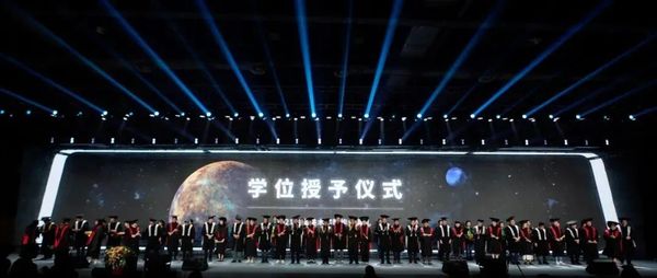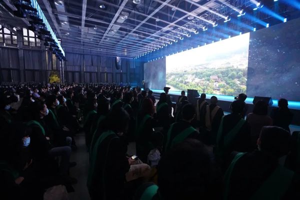 毕业典礼期间还播放了毕业典礼主题光影秀,典礼主视觉形象由影视与动画艺术学院师生团队总策划并精心打造,震撼绚烂的现场成为本次毕业典礼中令人难忘的亮点。