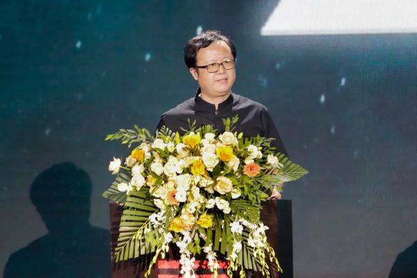教师代表、设计艺术学院于朕老师发言。他回忆起自己交织着激情和憧憬的大学生涯,回顾了2021年青艺周毕业季中国美师生凝聚力量、破除难关的经历,勉励毕业生们在进入社会后正面问题与挑战,怀抱“科幻照进现实”的信心逆风飞扬。