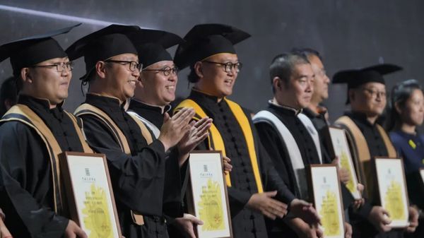 走上了国美的“道”,也就走上了一条“国美之路”。走在这条路上,牵引我们的是艺术的志业,推动我们的是先贤的目光,滋养我们的是共同的心愿。而我们所有的国美人都知道那一句话,就是——怀同样心愿者,无别离!在“国美”“为艺术战”的高昂呐喊声中,高世名与毕业生们将胸前金色的绣穗抛向身后,寓意将在校时的呵护备至化作毕业后的使命担当。从此,走出校园,背负担当,成为自己,成为栋梁!