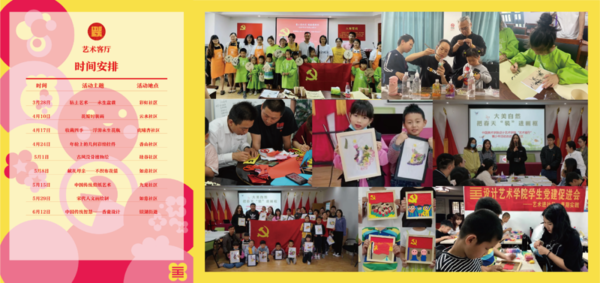 持续开展党建共建,师生党员锤炼党性、勇担使命。组织学生进中小学、进医院、进街道、进社区,开展社会美育、公益支教、设计扶贫、志愿服务。