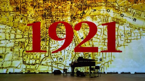 大幕拉开,铺满天幕的视频叠化出上海地图的“生长”,展现出辅德里位于1993年启动的“申”字南北高架工程的中央位置。天幕前的三角钢琴前,同一年95岁的王会悟回忆起与辅德里相关的点点滴滴,故事就此开始……