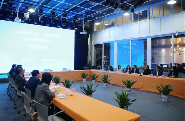 中国美术学院是国内学科最完备、规模最齐整的第一所国立高等美术院校,是首批国家“双一流”建设高校,担负着引领中国现代美术发展方向的责任和使命。上海外国语大学以“服务国家发展、服务人的全面成长、服务社会进步、服务中外人文交流”为办学使命,致力于建成国别区域全球知识领域特色鲜明的世界一流外国语大学。接下来,中国美术学院和上海外国语大学将基于双方的共识,本着“优势互补、协同创新、务实长效、互惠共赢”的原则,共同探索高等教育领域交叉、融合、发展的新契机。