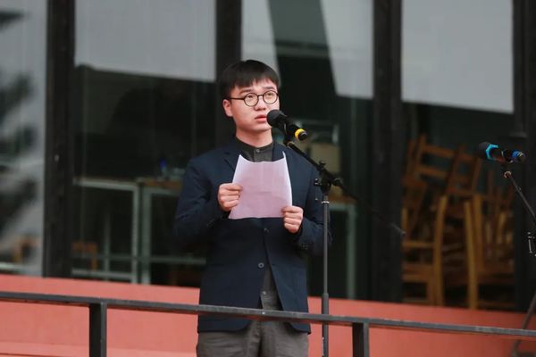 升旗仪式上,国家奖学金获得者、全国大学生自强之星、手工艺术学院学生党员汪权和夏朋(姚馥)奖学金获得者、绘画艺术学院学生预备党员胡明希作为学生代表发言,表达了对母校培养的感激之情,发出了立足专业学习、弘扬传统文化和校训精神、开展党史学习,以良好的精神风貌迎接建党一百周年的倡议。