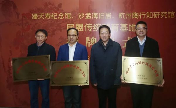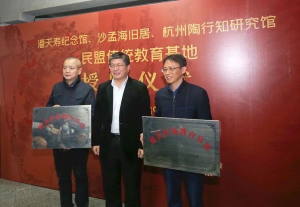 3月19日,恰逢中国民主同盟建盟80周年纪念日之际,潘天寿纪念馆、沙孟海旧居、杭州陶行知研究馆“中国民主同盟传统教育基地”和“浙江省盟员传统教育基地”授牌仪式在中国美术学院潘天寿纪念馆举行。中国美术学院潘天寿纪念馆被授予“中国民主同盟传统教育基地”“浙江省盟员传统教育基地”。