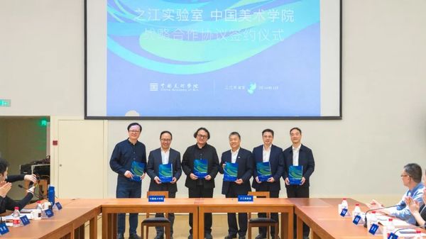 3月29日下午,中国美术学院与之江实验室战略合作协议签订仪式于象山校区举行。中国美术学院党委书记金一斌,之江实验室主任、党委书记朱世强,中国美术学院院长高世名出席并讲话,高世名与朱世强代表双方签署合作协议,金一斌、中国美院党委副书记孙旭东、之江实验室副主任袁继新、主任助理兼综合管理部部长陈伟见证签约。双方围绕“科艺融合,协同发展”等内容交换意见并达成共识。中国美院副院长韩绪主持仪式。