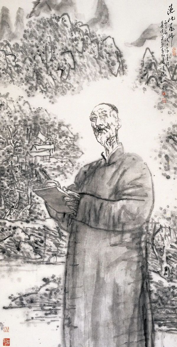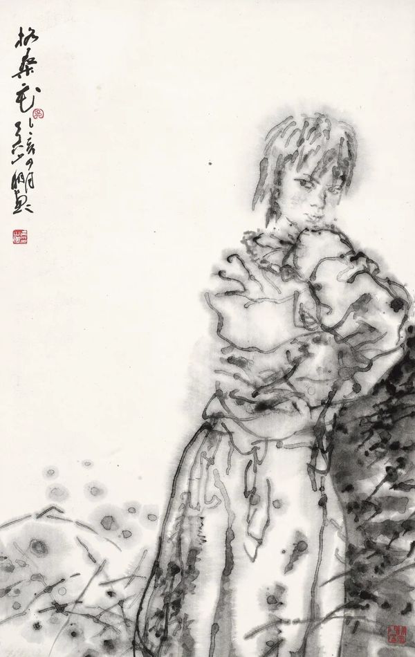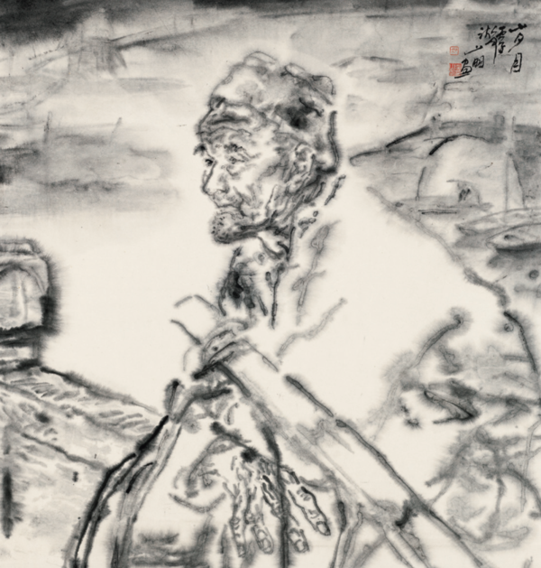 作为艺术家,他继承李震坚、周昌谷、方增先、顾生岳、宋忠元等浙派人物画大师的学术脉络,扎根传统,深入生活,为国人写照,为时代传神;他对中国画的本体语言进行了四十余年的深度探索,以别开生面的笔墨实验,创造了独具特色的艺术面貌,为当代人物画开拓出新的领地。