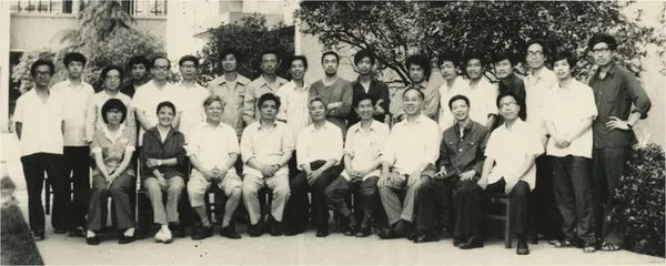 20世纪80年代部分师生合影(前排左二起:王庆明、吴山明、宋忠元、李震坚、王德威、顾生岳、方增先、吴永良)