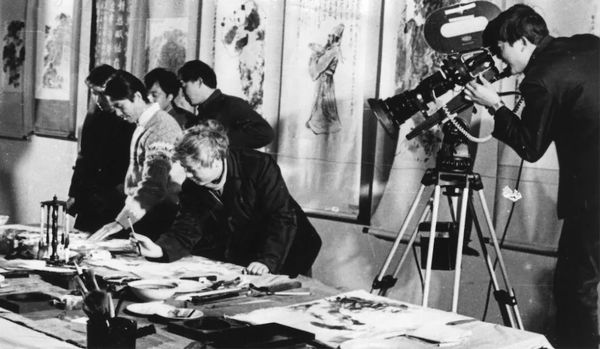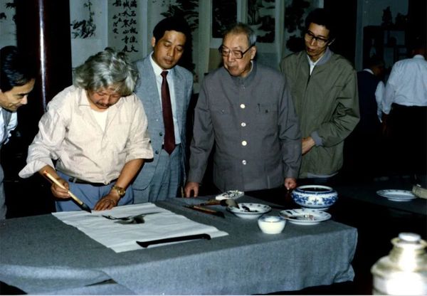 20世纪80年代,吴山明与舒传熹老师一起作画