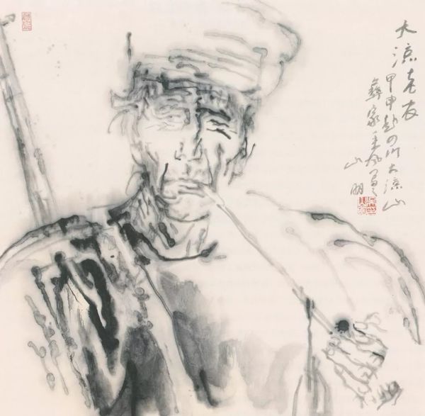 尉晓榕:吴老师的绘画正在形成一个体系,可以说大,可以说小,但是硬核在,里面有多组的对立矛盾,正因为矛盾激化,所以很难,他走的是险中求的路线。吴老师追求一种正向的回馈,用一种看似散乱的韵味去表达,有的时候是要有意识的固化、调理,他最后还是选择了险中求,用大量的实践去抚平这种矛盾,是他最大的努力和智慧。从速写到硬笔速写再到国画的创作,既欢乐清晰,又一气呵成,是很自然的,中间吸收了花鸟,画花鸟同时再画一些动物,最后又整到山水,是以花鸟为基础做的木刻画,形成一种肌理的效果,在人物上会用一种线网进行叠加。吴老师用淡墨也是非常的有成就,很典型的一点就是既不是用笔,又不是用墨,而是用“迹”,这是他最关键的形式趣味。