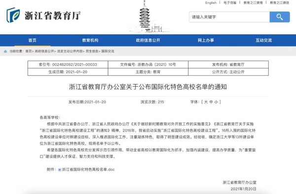 近日,省教育厅公布“浙江省国际化特色高校”名单,我校教育国际化工作顺利通过专家组验收,成功获批“浙江省国际化特色高校”。据悉,此次全省共7所本科院校、6所高职院校获此殊荣。