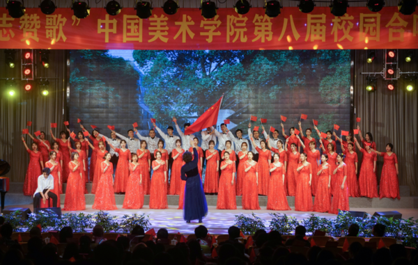 自2006以来,中国美术学院以重大纪念日为契机,已连续举办八届校园合唱节。以词育人、以曲化人,作为实施校园美育、塑造校园美心的重要手段,校园合唱节既是建设学校文化的一张金名片,也是拓展“课程思政”的一节活课堂。师生同台唱响辉煌成就,追忆革命先烈,抒发爱国爱校热情,让理想信念教育浸润在歌声中。在激昂的歌声里,在优美的旋律中,广大师生中抚今追昔,砥砺奋进。