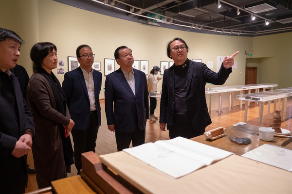 赵峰涛先后考察了校史馆、美术馆,听取学校有关办学历史和发展历程的介绍,了解学校教学特色、育人实效和文化交流成果,充分肯定了学校长期以来积极回应国家战略、助力国家重大活动、深度参与国家重大主题创作的成效。