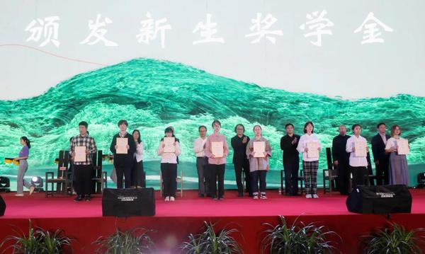 副院长曹晓阳宣读《中国美术学院关于表彰2020级新生奖学金获得者的决定》,校党政领导为获奖学生代表颁奖。