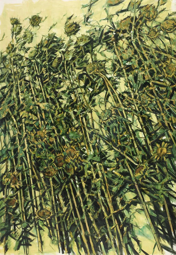 高世名回望了2006以来葵园的迁徙历程,直至今日,这二十世纪中国人的精神之花,终于在杭州落地生根。从油画到水彩,从诗歌到雕塑,许江持续地为这向阳之花赋予新的精神意蕴与感性形式。十余年间,葵与它的山河岁月,已然生成为一个纯粹却丰饶、深沉又强悍的精神意象,成就出一种会通主客、聚合群我、贯穿内外的艺术之道。在艺术家与葵园大地的身心交感中,在格物与感知的互相焕发中,在艺术语言的磨砺与提炼中,艺术家自身的生命经验得以彰显,一个深远的精神世界得以展开。许江笔下的葵,不是个人的吟咏抒情,不是小我世界的“杯水风波”,而是大历史、大时代中国人集体命运的写照。他的艺术中蕴涵着一种“大我”的抒情性,超越了文人画传统中的“写意”,也不同于历史画创作中的“主题”,那是一种深沉而磅礴的情志与意气,一种超越题材与观念的精神性。正是这种情志与意气,在生命的历练中成就了一种凝聚着中国文化根性、牵系着人民之心的大写的自我、大写的艺术。而此次,葵绽放于“最葵园艺术中心”,这个跨界工坊与艺术展馆合一的独特建构,一定会成为人们感受艺术作品、体验艺术创造、领会审美教育的一个重要平台。
