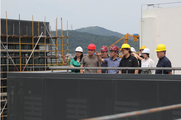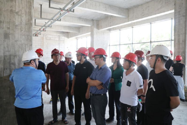 在象山艺术大院和良渚校区施工现场,金一斌、高世名一行实地察看了正在建设中的学生宿舍楼、教学楼、工坊、行政楼等工程情况,听取了校园建设和管理处对施工进度及后续计划的介绍,详细了解即将作为创新设计学院教学使用的建筑空间和设施规划,对高温下坚守建设工地一线的教职员工和施工单位表示慰问。