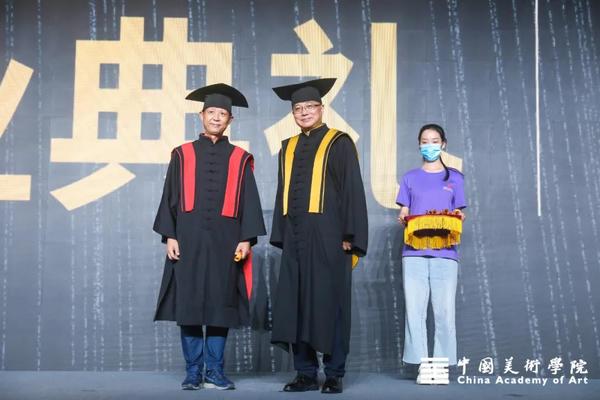 典礼上,副院长高世名宣读“中国美术学院关于授予2020届毕业生毕业证书、学位证书的决定”;党委副书记胡钟华宣读“有关获崇丽艺术奖学金的决定”“有关获省级、校级优秀毕业生荣誉称号的决定”;副院长杭间宣读“有关获2020年毕业创作暨林风眠创作奖、优秀毕业论文奖和毕业创作(设计)辅导奖的决定”。
