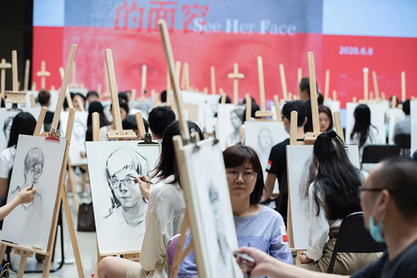 “笔颂英雄”版块中展出作品来自于中国美术学院绘画艺术学院与浙江省妇女联合会、浙江大学医学院附属邵逸夫医院、浙江美术馆共同策划举办的「看见•她们的面容」艺术绘像活动。6月8日上午,来自学校绘画艺术学院近百位师生为四十位邵逸夫医院女性医务工作者现场速写,并把绘像作品赠送给白衣天使们。以表达对每一位在抗疫斗争中舍身逆行、英勇无畏的女英雄的感谢之情,致敬每一位在关键时刻勇敢前行的中国女性。