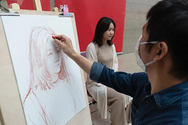 绘画艺术学院党总支的党员教师们积极参加了这次活动,比赛获奖的学生们也活跃在活动的现场,大家都说:「有机会为抗疫英雄们画像是我们的荣幸」。