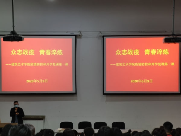 5月9日下午,建筑艺术学院全体学生同上了一堂“众志战疫,青春淬炼”的主题思政大课。学院党总支书记周宝松从《梁任公少年说》谈到如何在社会危难中凸显青春担当;从《礼记大道之行》探讨如何在社会危难中持正智性之行,在无畏中保持敬畏;从《黄侃读书讲学二记》思考社会危难中的我和我们,将他律转向自律。并以习近平总书记在给北京大学援鄂医疗队全体“90后”党员的回信做为结尾,鼓励同学们凸显青年学子的责任担当。